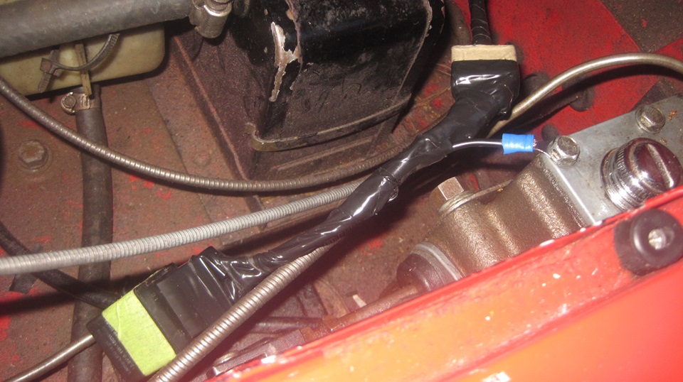 Sometime later it dawned on me that we could connect the Pilot lamp wire to one of the front turn signal terminals on the 1500 type T/S relay, which would verify operation when turning in one direction only. If we could find a pair of diodes we could have pilot lamp for both directions. At least we haven't disturbed the original 3-pin socket. Tape up the new modification mini harness, and get back on the road before dark.