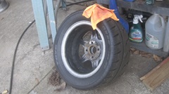 Jerry has been mounting new race tires, two steps forward and one step back. Must remember to install TPMS (Tire Pressure Monitoring System) sensors into the hidden end of valve stem before installing the tire on the rim. He has a good quality static balancer, watch the birdie while pushing two small weights around the rim to center the bubble before knocking the weights onto the rim.