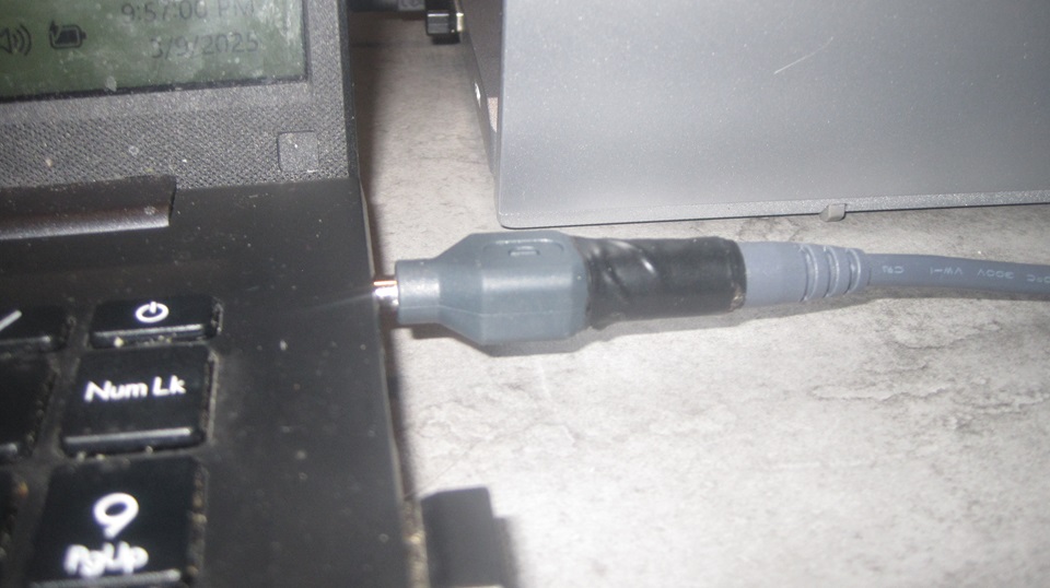 While sitting on WiFi in late evening, my computer charger crapped out and nearly left me with a dead battery, quickly diagnosed as a broken wire. Curses for everyone, because in the year and a half since buying this computer we have never been able to find a spare charger (due to a proprietary connector). Now crisis time, we fiddled some withe wire to make momentary connection,and positioned it to stay connected While searching the internet for a replacement charger. By 3-am we had a source, and 50% charge in the battery when we could knock off to get some sleep.
