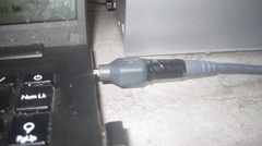 find the solder and some shrink tubing, extra small and downright tiny sizes. Slip the larger shrink tube over the outer jacket, and the smaller shrink tube over the center wire. Solder the tiny center wire,slip the tiny tube over the solder joint and heat shrink it. Pull the twisted braid shielding wire from both directions to overlap two inches and twist them together, then heat shrink over the outside. Cross fingers, plug it in, and, .... it didn't work. Well, it was fun trying. Set that aside and think about what we might be able to do with the remaining 15% charge level in the computer, but shut it down for now.