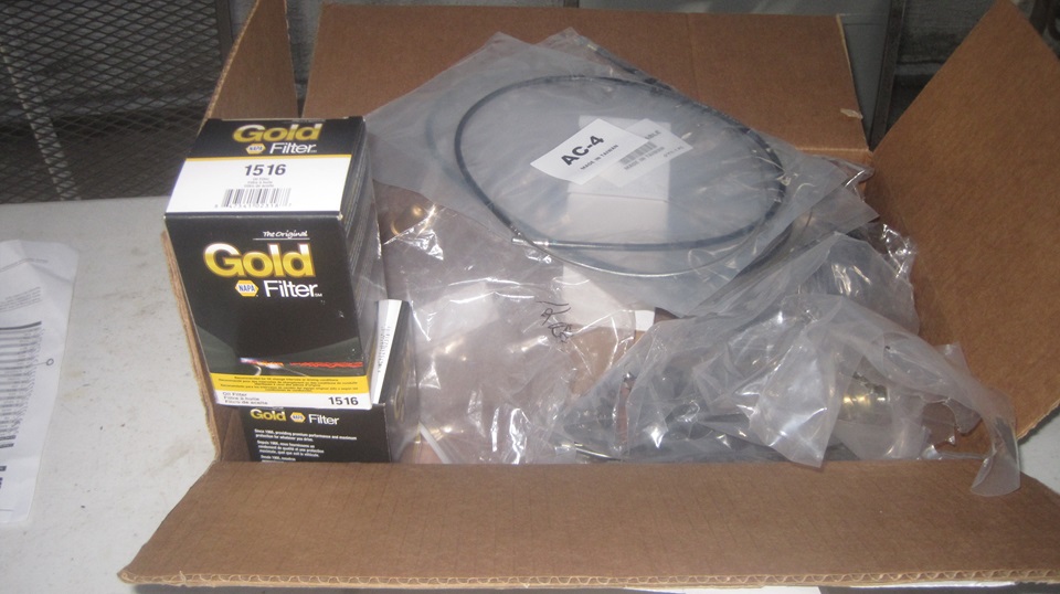 A little late getting started today, because we did a little side trip to a Napa store to pick up a couple of oil filters for the new hanging spin-on adapter. On arrival at Tech Central there was a box of parts from Scarborough Fair waiting for us (a full week late), and the power charger for my computer from Amazon, which actually arrived on Sunday via one day delivery). We can put the computer charger to work immediately (because I like the style), The charger we found at Walmart in emergency, being used since Saturday night, will be re-packed and stowed in the Magic Trailer for future spare part.