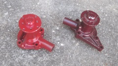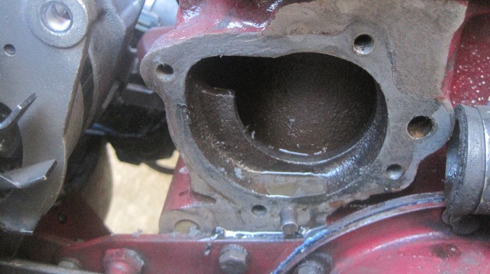 Grab a new B gasket from the trailer, assure it will fit the new B pump, stick the four bolts in the pump, and ... oops. Two short bolts are okay, but two long bolts are not long enough. Seems like the B pump is slightly thicker at the longer bolts. Don't know if
