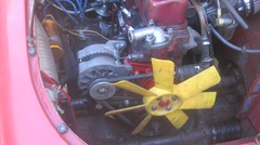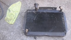 We have been driving the new MGB engine since mid December with an MGA water pump, because we didn't have the MGB pulley required to make the swap. Well the MGB pulley came in yesterday, so grab that and clean/paint it quick, as we want to install it in an hour or two. How many water pumps do we have in the trailer? One A on the right, one B on the left, not counting the A pump currently on the engine. Drain the radiator and remove it from the car.