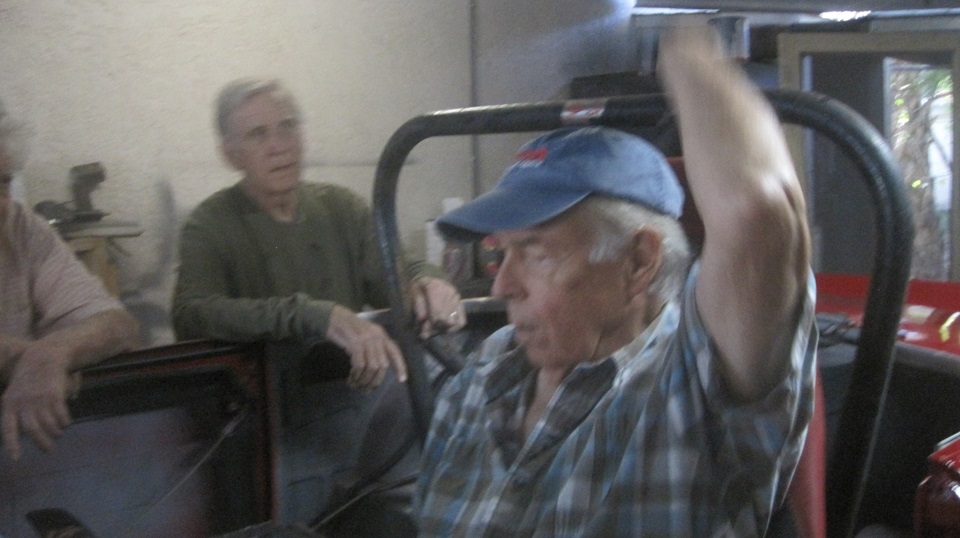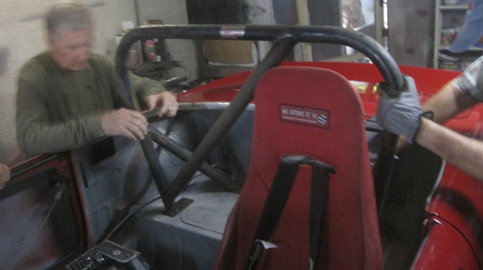 The guys are making more progress on Tina, the Wanna-B race car. Having a nice new red coat seems to be good motivation.
