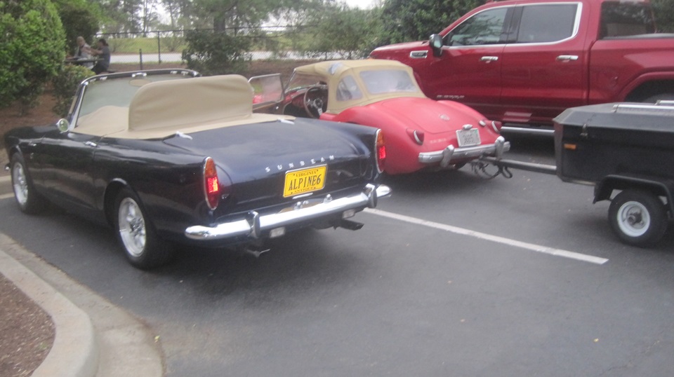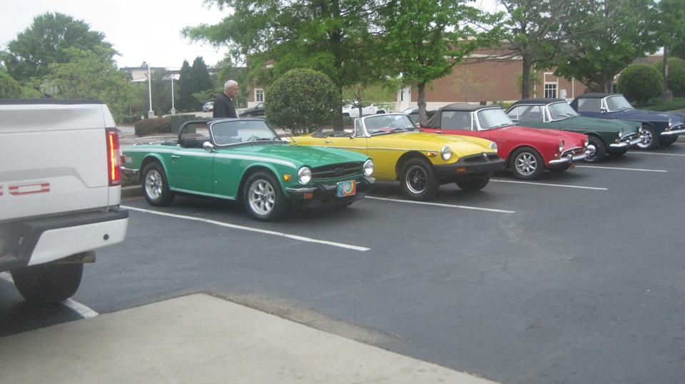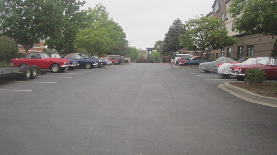 Travel day. Ducking morning and mid day rain storms, heading south by mid afternoon. West Virginia, Virginia, North Carolina, South Carolina. One fuel stop in Fort Mill, SC. Landed in Lexington, SC before sundown. Got another invite to visit Australia. Well, probably not this year. We haven't found the road to get there yet. -- Late night at a local hotel, we notice a variety of vintage British cars in the parking lot. Don't know why they are here, but we will find out, later.