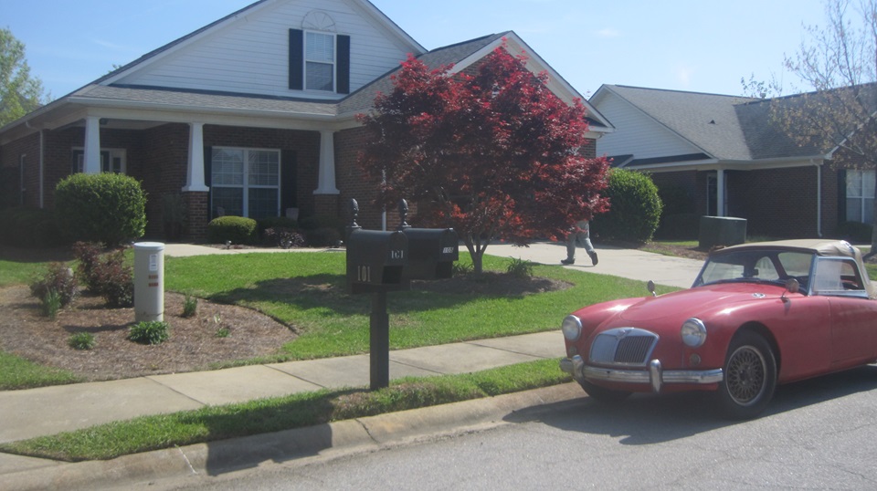 A three hour visit with Hawood Hamilton in Columbia, South Carolina. He has a neat classic American Oldsmobile (could almost put the MGA in the boot). there was n Aston Martin with an American V8 (probably Corvette) under the bonnet in place of the original V12. Seems like an odd arrangement to me, but apparently it is a desirable combination.