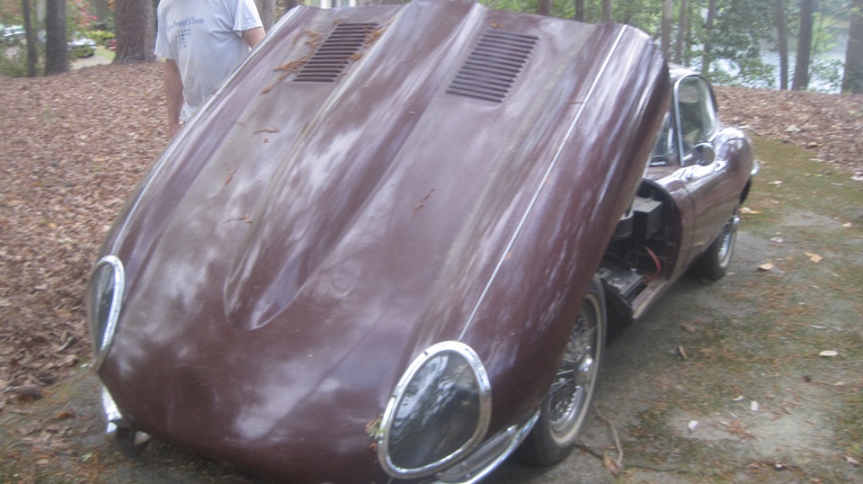 There was a a Jaguar E-Type, not currently drivable due to a significant carburetor fuel leak, and a blown exhaust header pipe seal. (We might (or not) be be able to fix the leaky carburetor with some kit parts he has in hand, just not in the time available today (He's heading out at 1-pm).