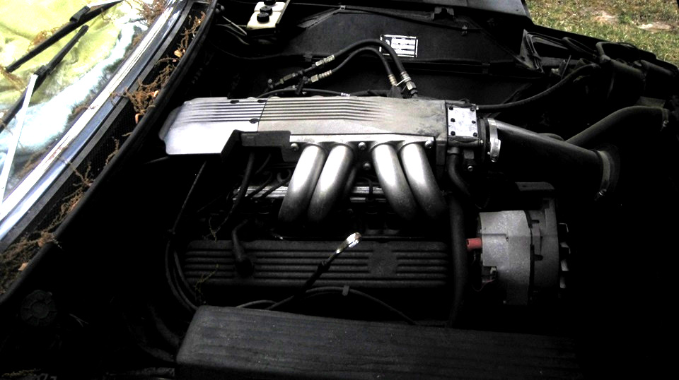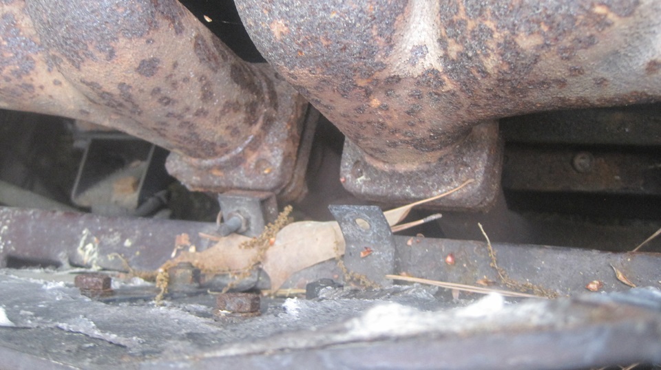 No one knows how long the exhaust system has been in place untouched, but the flange nuts and studs look convincingly rusted. The car needs to be on a hoist for underneath access to even think about torquing on the rusty studs, and no hoist here, so that's not happening today. If you break one of those studs, the manifold has to come off for repair.