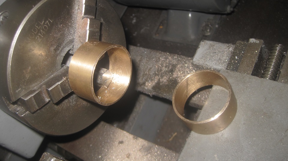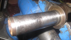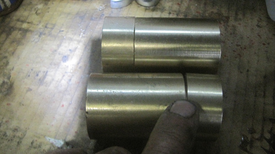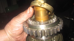 The original style replacement bi-metal bushing has not been available for decades. I use 660-bronze plain sleeve bushings. These are available in 1-3/8" ID, 1-1/2" OD, 2" long. We need 2-3/4" long, so buy three pieces. Cut 3/4" long piece from each end of one piece. Insert one 3/4" piece and one 2" piece to makeup the required 2-3/4" length. Three 2" long bushings can thus make two 2-3/4" long assemblies to repair two gearboxes. Fix one and keep the other parts for spares.