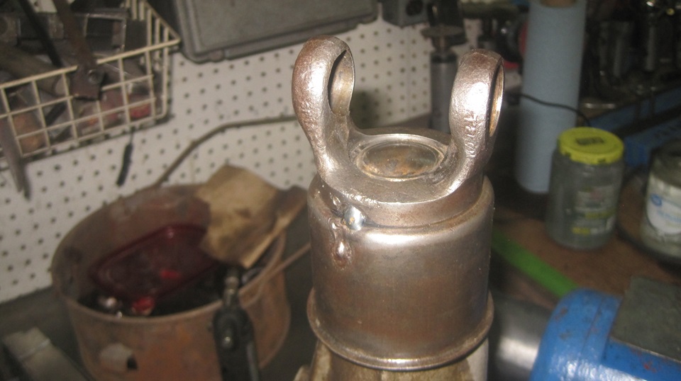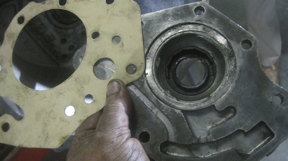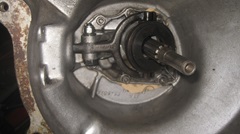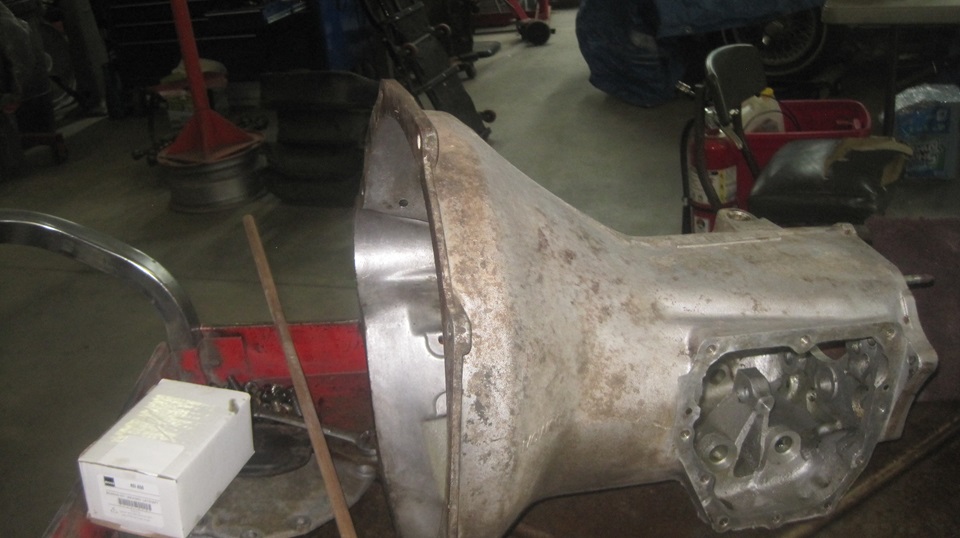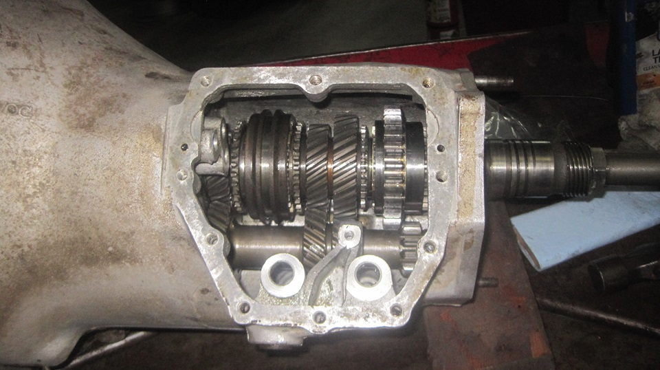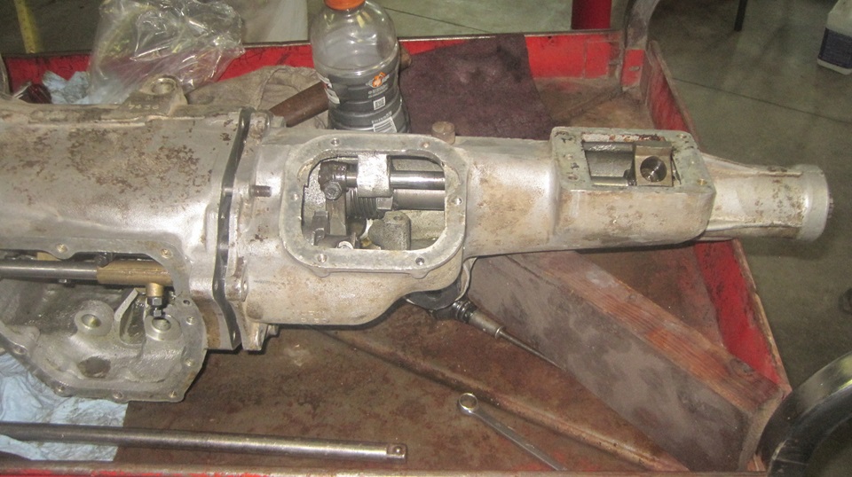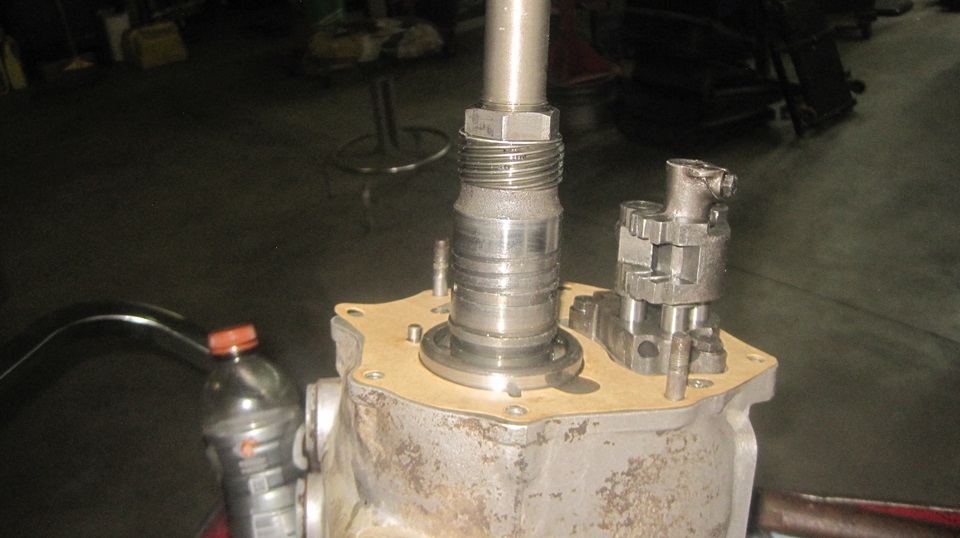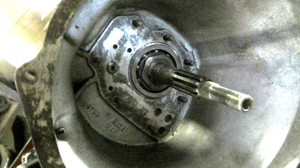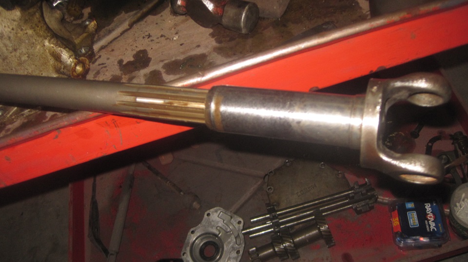 A bit more work to clean out the female splines, get it oiled up and sliding well on the gearbox output shaft. Fitting it into the tail housing reveals the gearbox will need a new tail bushing, Too much time on the rear flange where someone had damaged the ears around the U-joint bearing cups, so put a new flange on the shopping list.