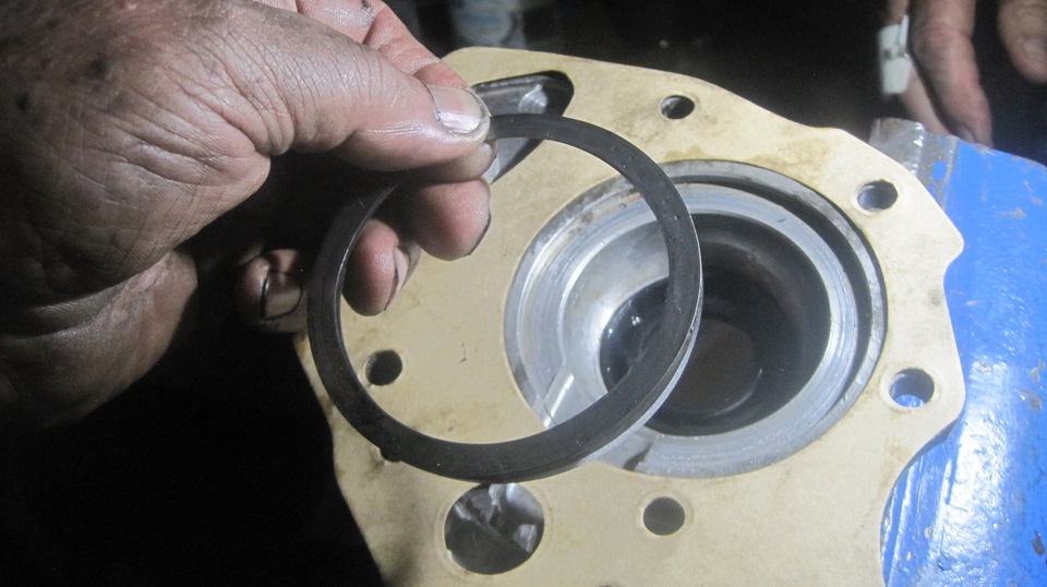 Beware (or be aware) that this may end up being interference fit. You may need to hone out the bushings with a brake cylinder hone, or sandpaper on an appropriate mandrel. Best to do this to make the bushings fit on tehe propshaft front end spigot before inserting the bushings into the tail housing. We honed out all three 2" pieces before cutting the shorter pieces. After installation check the fit again to be sure the spigot will still slip into the bushing and turn freely by hand. install the rubber seal last.