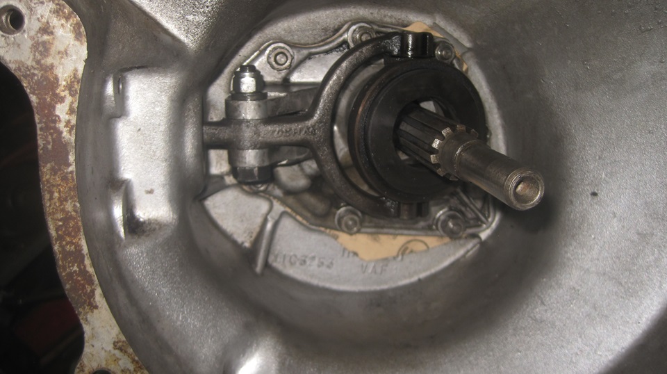 So we proceed to disassemble it for inspection (doesn't take long). Half the work was knocking the needle bearings our of the lay gear. This went fast, so not enough pictures. No preconceived expectations. Slightly better than average for a used gearbox, wild guess, maybe 50,000 miles on original assembly, never opened since it left the factory. Selector gates in very good condition, little wear. Likewise little wear on the three shifting forks. Gear teeth all perfect, normal wear on layshaft and 2nd gear bulk ring, needs rubber seals , a clutch lever boot, and a rear rubber mount. Okay, it's a keeper, we will rebuild it.