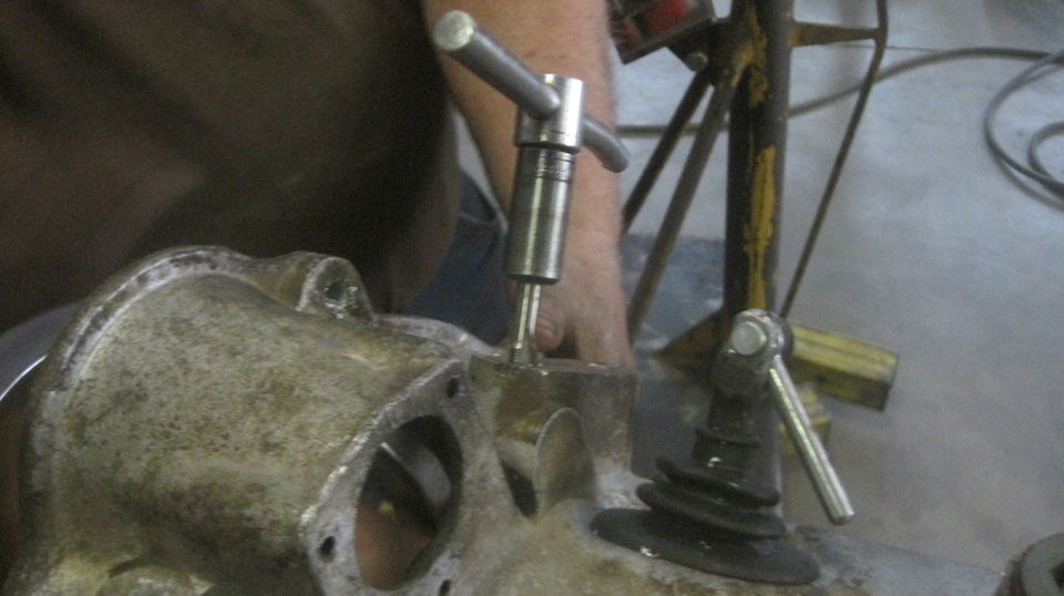 Drill and tap and install stainless steel Heli-Coils, two for the clutch slave bolts, two for the starter motor bolts, and four for the remote shift extension bolts. This is partly to avoid the need to find new coarse thread bolts. But more for the desire to have the steel threads in the aluminum casting. This comes from the day 30 years past when the starter motor fell our, jammed up the flywheel, broke the crankshaft, and and caused very expensive damage to the engine. The theory here is, any time you need to R&R bolts in an alloy casting more than once, you should install the Heli-Coils for long tern durability of the threads. This was about the time we were thinking we should have spent another half day with the gearbox before pulling the engine.