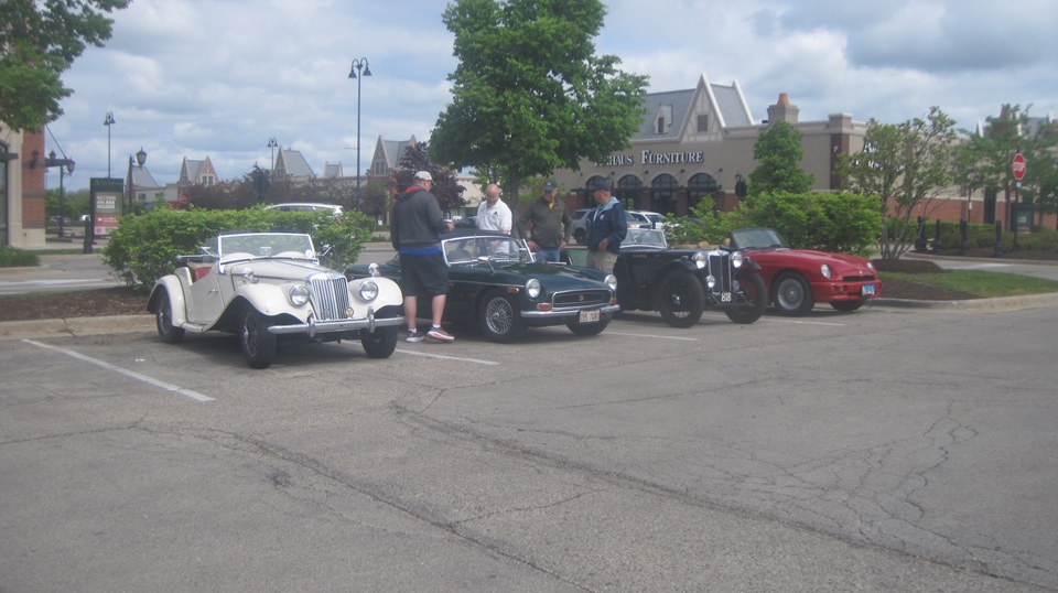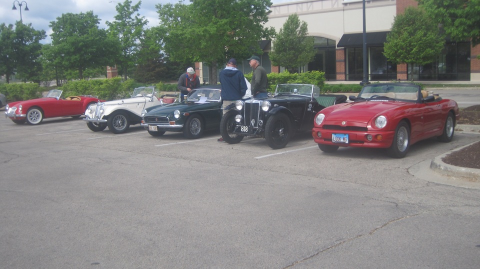 Then we were off to South Barrington, Illinois for 10-am meet with Chicagoland MG Club for their annual Spring Chicken rally. Very nice weather for the cars to run with tops down.