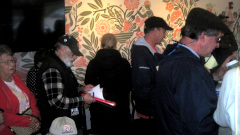 Must have been nearly 40 people for registration, squeezed into a small room for Drivers Meeting.
