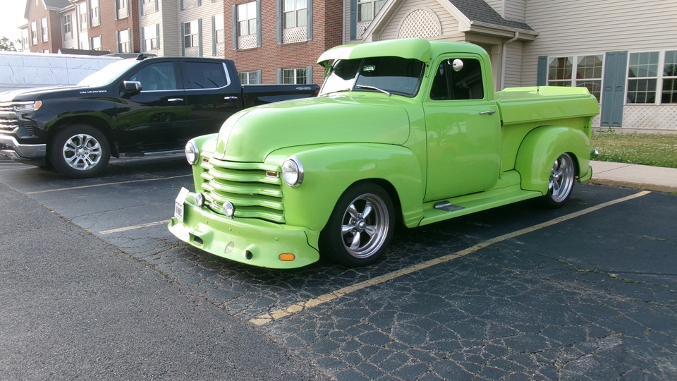Found a couple new friends. The green Chevy from Connecticut was at a hotel in Sycamore, IL. The owner was chatting with the owner of another collector truck, telling him that he had seen our MGA before, had chatted with us, and knew our car was traveling all around North America and had been to Alaska, among other things. Small world, and a close knit community of collector car enthusiasts. Then at McD's we were confronted by the owner of the Citroen Du Chez Vous from Illinois, and killed another hour chatting. Put some old cars out in public view, and they will be attracting lots of attention.