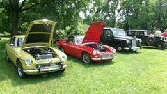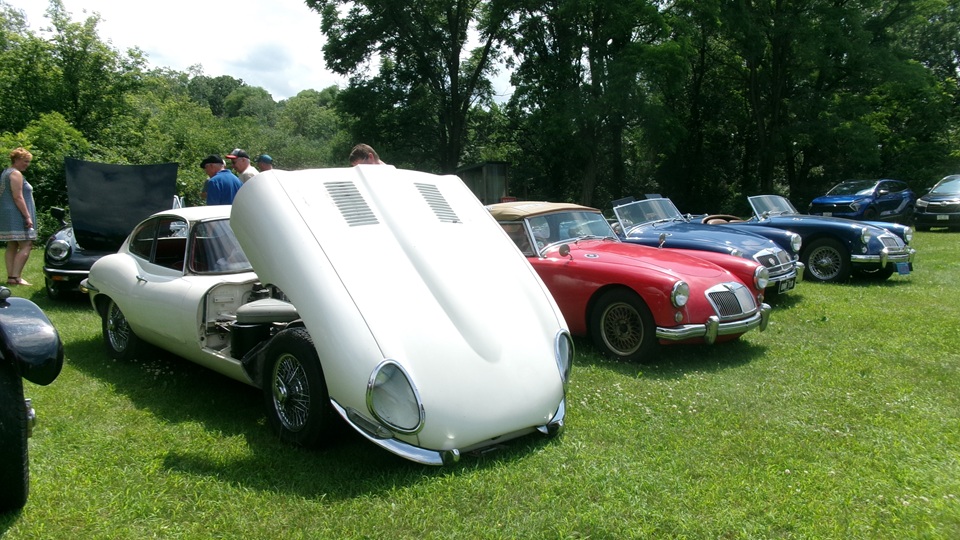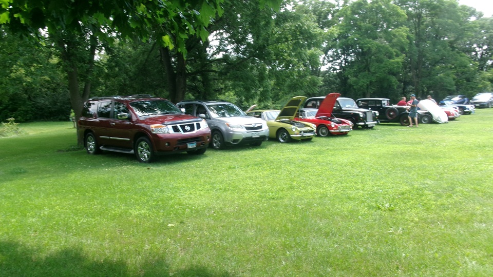Off for some fun today with Quad Cities British Car Club, Summer Party. For the uninformed, Quad Cities is straddling the Mississippi River at Rock Island and Moline in western Illinois plus Davenport and Bettendorf in eastern Iowa. QBAC covers this and the surrounding area within driving distance. This extends up river into southwest Wisconsin. The location is home of Dennis and Crystal Klemm in Orfordville,Wisconsin. We had been here before. A little search in my travel log makes it July 1, 2023, just two years ago for summer picnic with the British Boots and Bonnets car club from Rockford, Illinois area. Same place, same game, many of the same people. The Klemms are associated with several different car clubs. -- We arrived on schedule at 1-pm, but many people had a head start on us, already sitting down with food in hand. So we had the picnic first, before heading out for tire kicking.