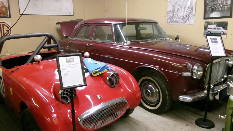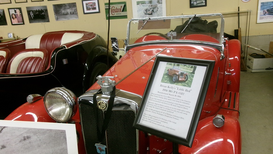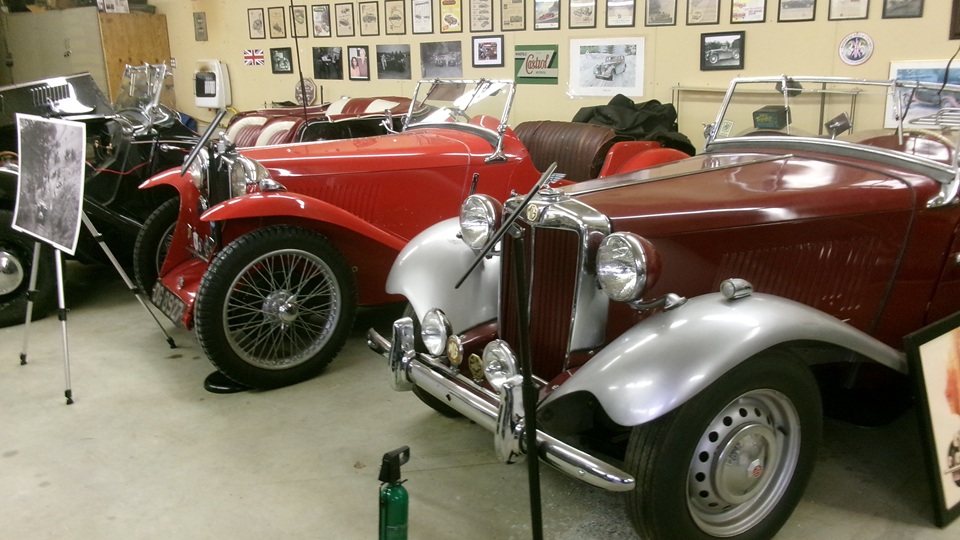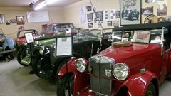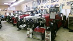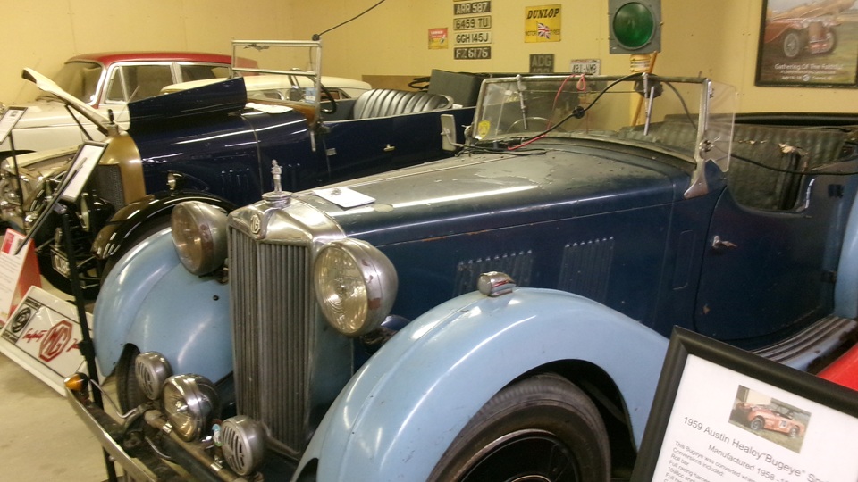 We walked into the main shop building first, the largest of four out buildings. First impression is. museum, a nice collection of mostly restored vintage British cars, and mostly MG. Right up front were two M-Type Midgets, a D-Type and a PA. Wow, a good start. In the back corner, an Austin Healey bugeye Sprite and a Rover sedan, just for contrast.