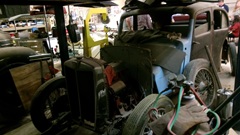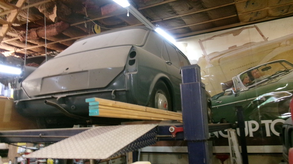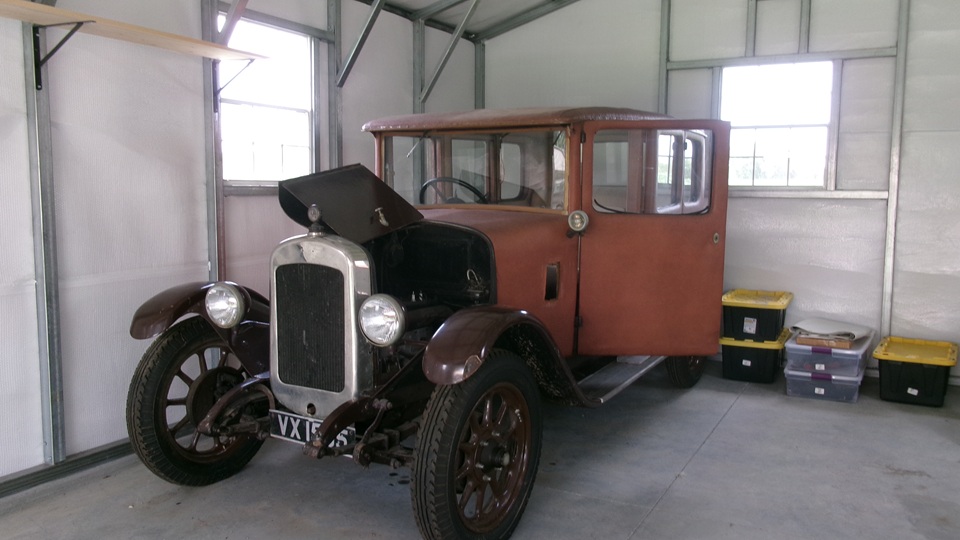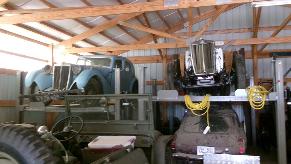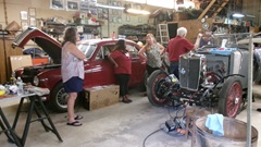 Checking out the second building, the MGA looks finished, perhaps just in for some maintenance. The open touring car next to it, something large and prewar. Behind the MGA is the future projects corner. The large white ghost is a mystery, but there are two Austin America tickling a fond corner of my heart.