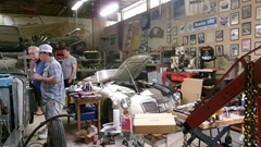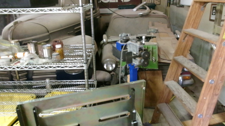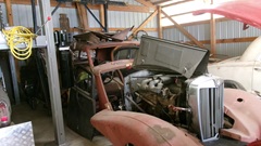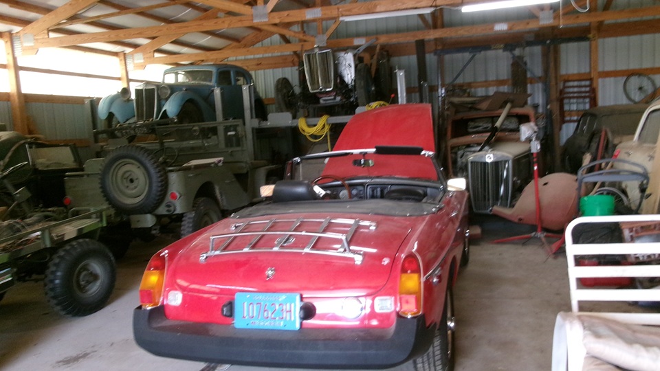 I couldn't guess the large sedan with the light blue cowling, but the bright yellow frame is definitely an English Wheel, in case someone wants to hand form some contoured body panels. The rubber bumper MGB must a driver car that was just finding for a parking space, as it looks out of place in this otherwise eclectic collection.Fun poking in the dark corners to see what treasure might be hiding here.