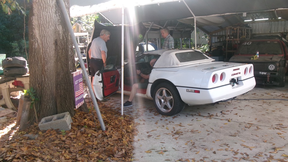 The Corvette was moved around some for cleaning up the patio work space. Then time for lunch and chat.