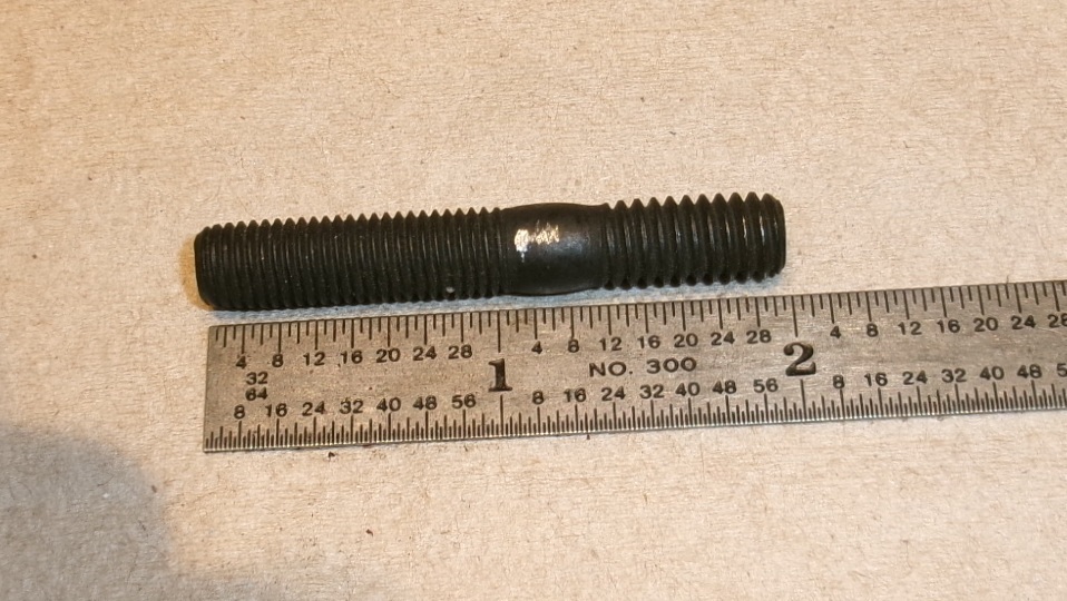 Updating the Part Numbers tech page for 52K531 thermostat cover studs. I got to measure and test one yesterday with a few surprises. Prior information said there is/was 5/16-16-BSW thread on bottom end of this stud. A current issue replacement part will accept a 5/16-18-UNF nut on the bottom end (surprise). A decent looking cylinder head will also accept the UNF coarse threaded stud (surprise again). So maybe the original stud was not BSW thread on the bottom end, but I will still need to check and verify before changing historical information. Additionally the current issue stud has too much thread length on both ends, which may or may not be a problem in assembly.