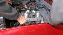 Then someone thought that someone else may have dropped half of a valve lock split cotter down the hole around one of the pushrods. When they pulled out the pushrod to look down the hole, the tappet came up with the pushrod, ending up on it side in the tappet galley space. Another lesson from the School Of Hard Knocks. Always jiggle the pushrod to assure it will break the oil vacuum seal to release the tappet before lifting. This then requires removing the carburetors and intake manifold for access to remove the front tappet cover to put the errant tappet back into its bore.