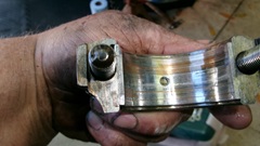 For a few days now the1800 engine has been showing lower oil pressure with hot oil, and has now developed a rattling knocking noise with hot oil. That has to be at least one loose con-rod bearing that should not be. I can only speculate that the shop that did the machine work to plane the block and head didn't get the block clean enough afterward, so some "dirt" in the oil may be eating the bearings. No time to be dragging feet, so we have ordered up another new set of con-rod bearings.