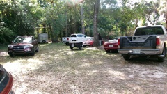 There was a marginally funny (but serious) issue while driving the Rabbit onto the trailer. The truck was last used to tow a different trailer, and it had the wrong (too small) hitch ball on top, so the trailer hitch was not securely coupled. As the car was driven onto the tail of the trailer, the trailer tilted, and someone who was standing on the front of the trailer was casually launched over the side, not significantly injured, other than his pride. When the car was backed away, the trailer hitch landed back on the hitch ball. Not long to crank up the trailer hitch jack to change the tow ball on the truck, and get it securely couple up. Then drive the Rabbit properly onto the trailer and get it tied down ready to travel.