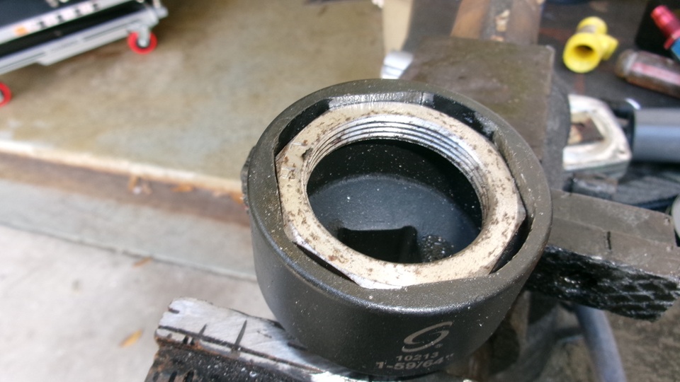 the 1/2' drive tool box with other moderately large sockets, while the really big (and expensive) blue tube socket (poor quality) is being relegated to the metal recycling bin to free up some space in a large tote box in the trailer. Jerry still has another big blue socket hanging on the wall in his shop, still clean like it was never used (and maybe never will be used).