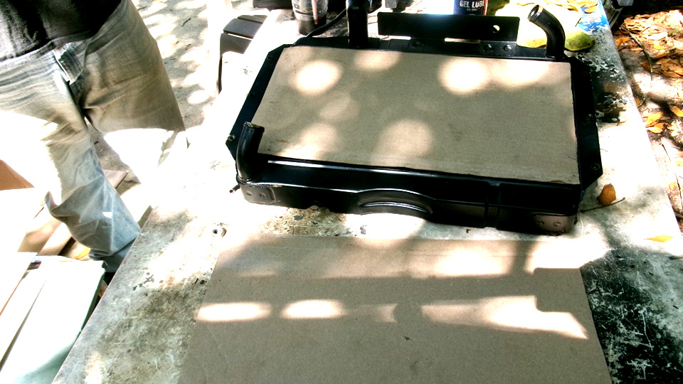 We still have possession of the new radiator that does not physically fit in the MGA. This came from Moss Motors by way of Scarborough Faire. I think Moss finally accepted the fact that it is essentially junk, and they will have to scrap or return a bunch of them to the manufacturer. New ones, possibly from a different maker, have some lead time, and will not be available until Summer. I think I got "house credit" for it, but we may have to hold onto the misfit part until it is determined if it will need to be returned, or possibly scrapped. So we were cutting cardboard to cover and protect the core fins, both sides, while it sits here being moved around and possibly abused for no one knows how long. Not wanting to put this piece of junk in the attic that should only have good used parts, it is for now an under-foot obstacle. -- Then another hour helping Jerry change out some new shifter parts on the Rabbit,and that was enough fiddling for a good Tech Friday. Someone said NASCAR Fast Trucks were running this evening. Not for us, so off to find a good WiFi spot .