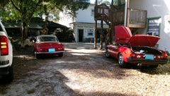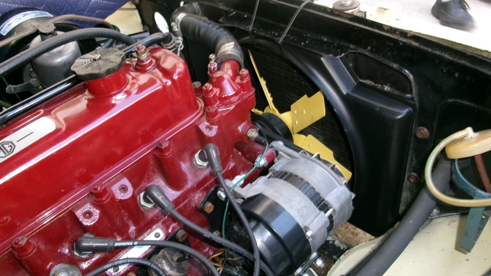 Morning at Tech Central. We have been driving short distances multiple times daily since the radiator swap last Tuesday (with the 7-psi pressure cap in place). Open the bonnet to check, and no water loss at all, not even from the coolant recovery bottle. And oil pressure has been perfectly high since the con-rod bearing swap eight days ago, like 75 psi on start up, 70 psi after five miles on the road, and 45 psi at idle. So it looks like everything is copacetic there. -- Tina the racing MGB (I think we can give it that credit since it has been on the track once or twice) was getting some minor cable adjustments and tune up. It may be heading back to the track again soon. -- The Corvette got a new battery so it starts and runs okay now. But it blew a 40-amp fuse, and seems to have a parasitic power draw of 11-amps when switched off, which would explain why the last battery failed. Checking the fuse designation, it seems to be in the tail light circuit, or maybe the prior flaky fuel pump is on the same fuse. Disconnect the battery until someone may be interested enough to trace the faulty circuit. meanwhile, the Corvette will be getting a new convertible top, and the prediction is another two weeks until the car goes home.