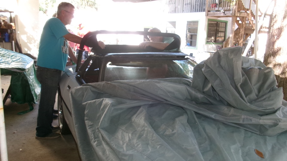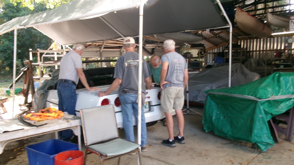 Good turn out on a warm day at Tech Central. Guys will be working on replacing the convertible top on the Corvette.