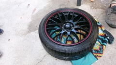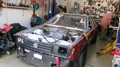 Some time searching for a very slow leak in a Miata tire and wheel assembly. No luck, put it back on the car and check tire pressures before driving it,every few weeks or so. Some paint touch-up work on the racing Sirocco after a fire under the bonnet, due to failed rubber O-rings on the fuel injectors. And a bit of work on the air intake for the same engine. -- Breaking up shortly after lunch, as usual. Just as well, as we need to get on with the crankshaft hunt.