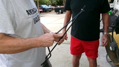 Then there were two half liter bottles of DOT 5.1 brake fluid. This stuff is glycol based fluid, one step up the performance scale from DOT-3 and DOT-4 fluid (definitely not DOT-5 silicone fluid). Apparently Jerry noticed some brake fade on his last race outing with the racing Rabbit, possibly due to some water absorption in his DOT-4 brake fluid (which had not been changed for some time). So he thought it might be good experience to try the DOT-5.1 fluid, just for kicks.