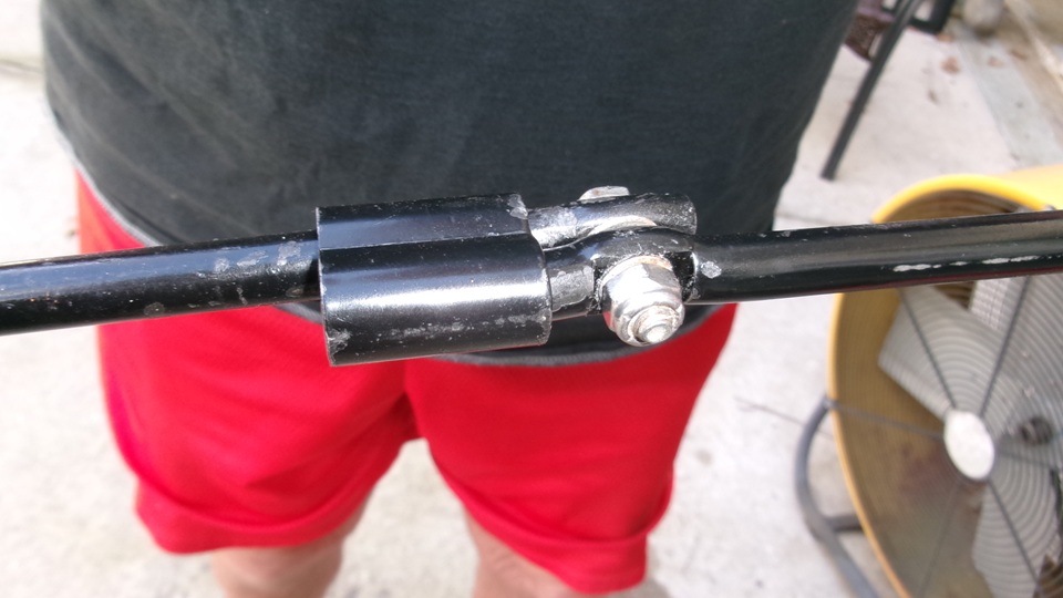 Someone was repairing a crank handle for an MGA screw jack. The original rivet joint had decomposed, so they replaced the rivet with a bolt and self-locking nut, and put a flat washer in between to make it fold more smoothly.
