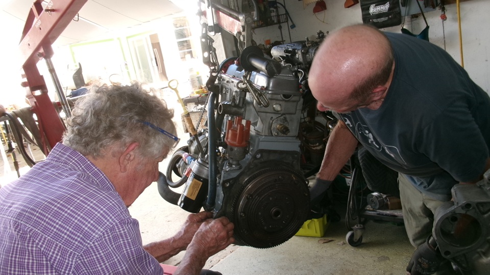 Navigator and i got busy changing our battery ground cable, long time overdue. It became more urgent a day or two ago when the car wouldn't start without aid of a small jumper box. Jerry was making good progress on the Sirocco engine, getting close to race ready again.