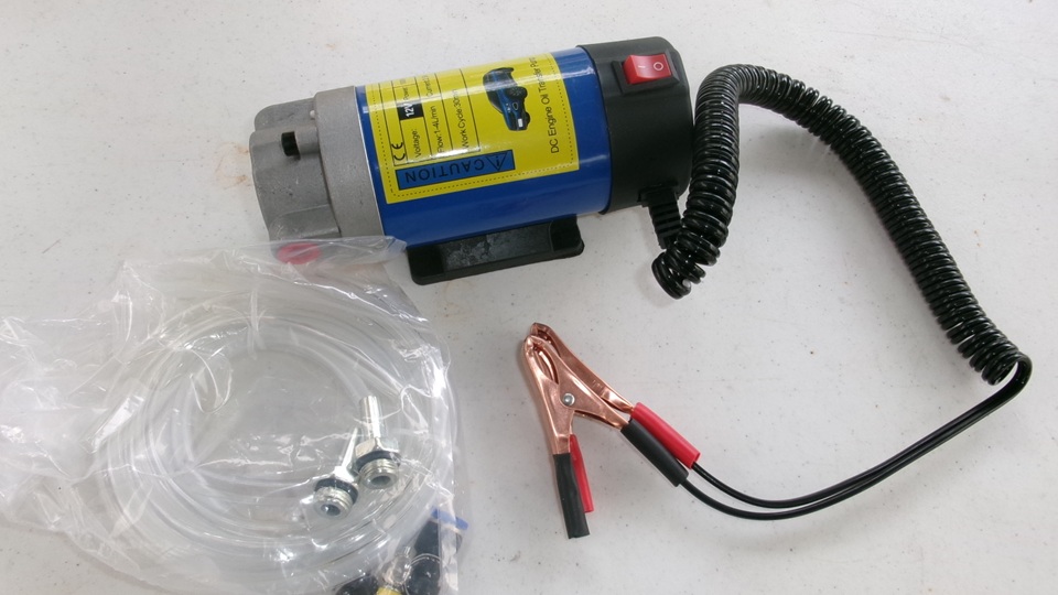 We got to check out some new toys over lunch. The first was a new 12V DC powered engine oil transfer pump. Two