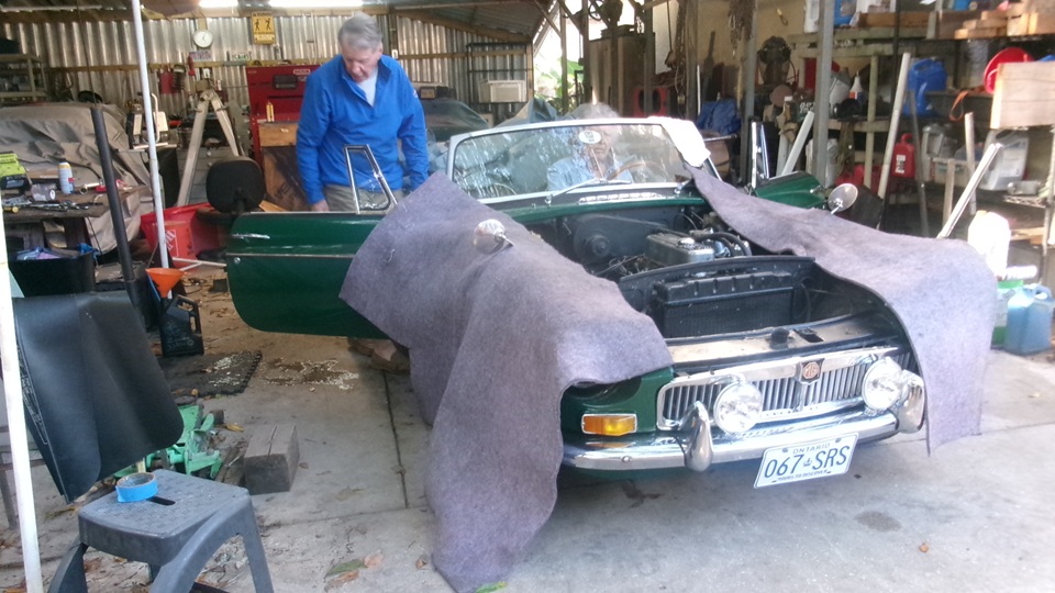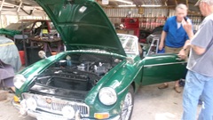 Two projects for us today, beginning with the MGB with new clutch. The owner couldn't come to grips with the fact that it took three Fridays and a bit more, and some express delivery parts, and it still wasn't finished. First requirement was to make the clutch