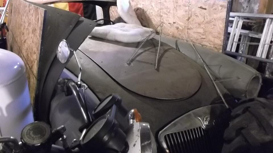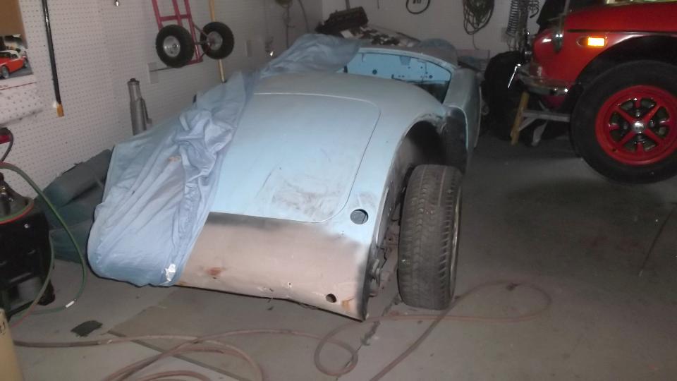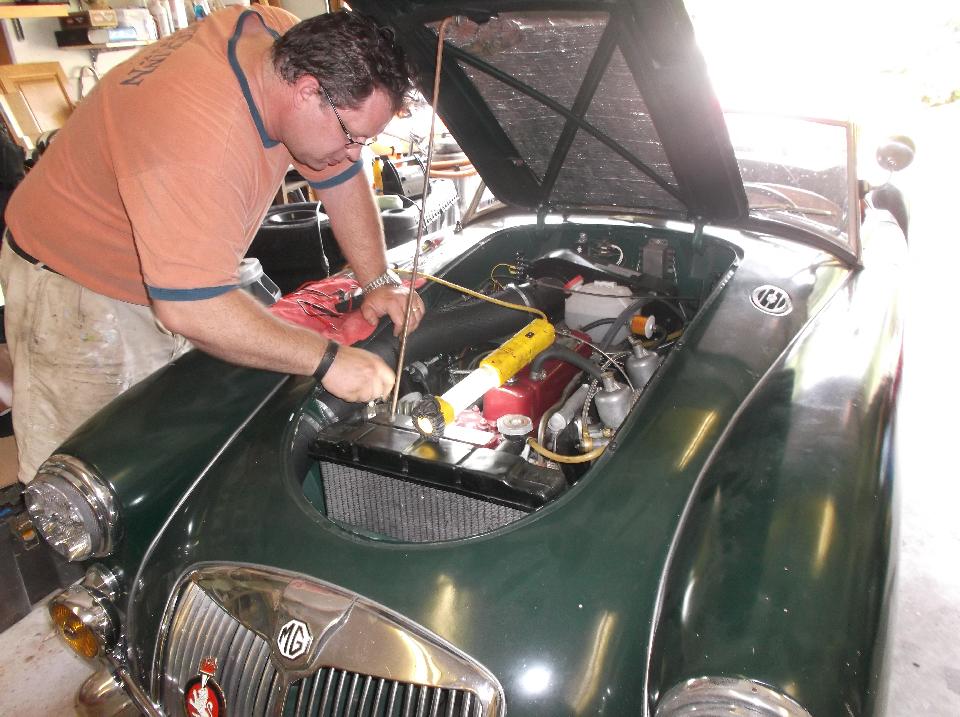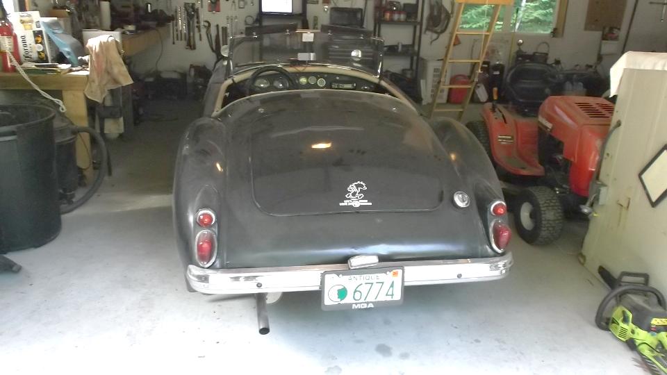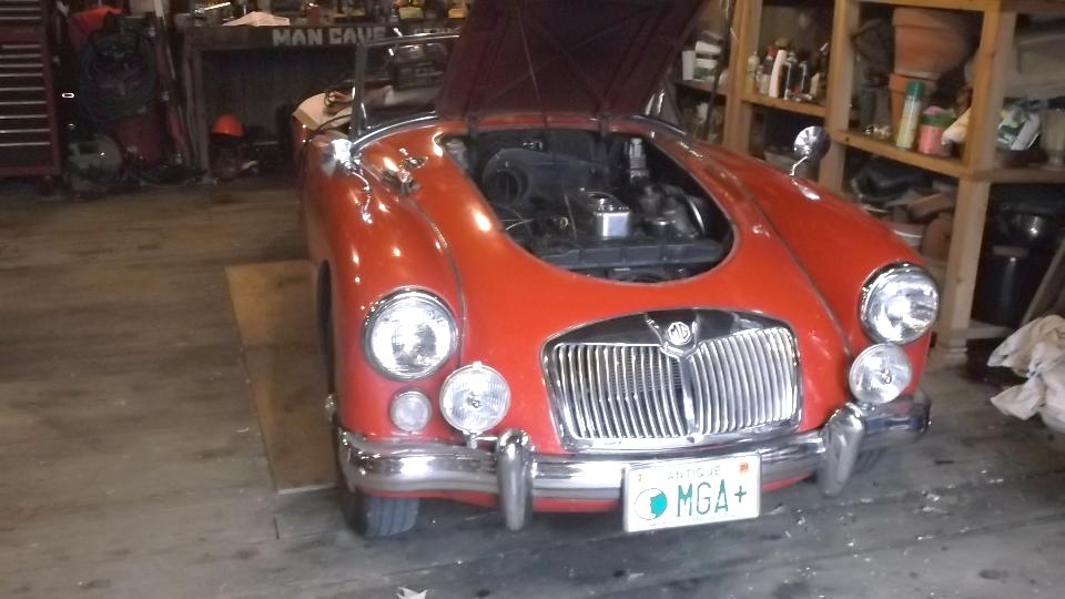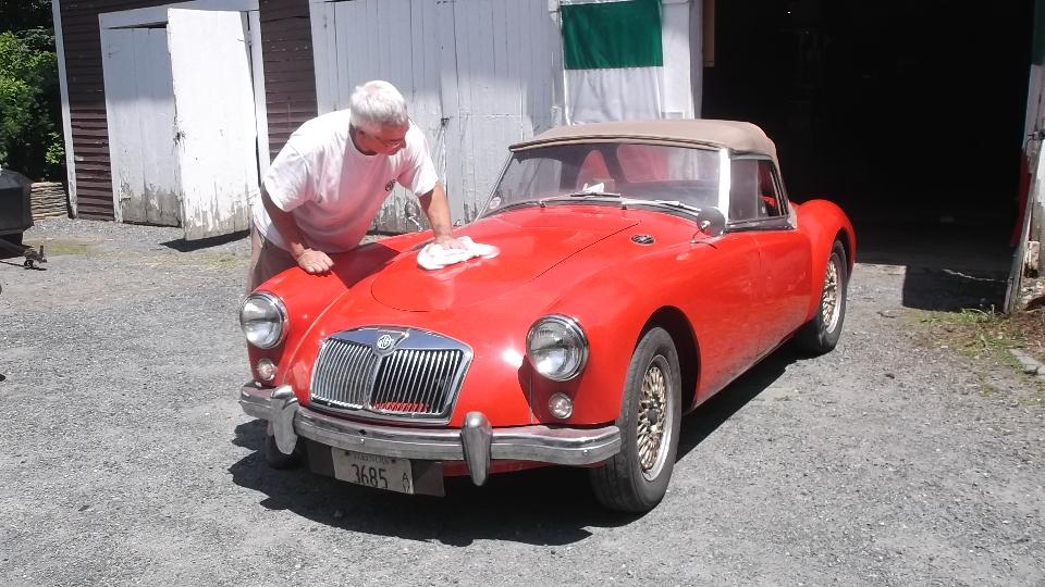 Up early to wets and and buff the small respray areas, no big deal, but now the MGA is all the same color again (and it has a fresh coat of wax on the repainted parts).