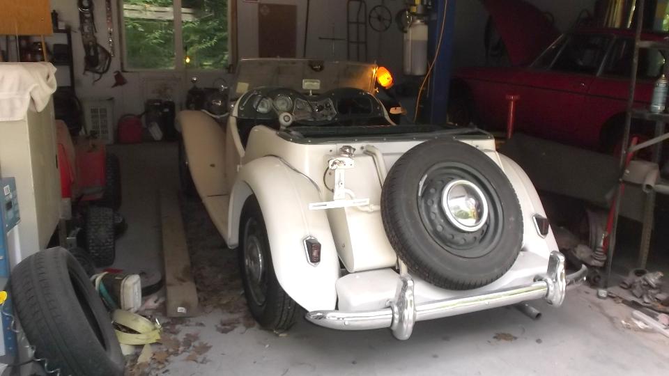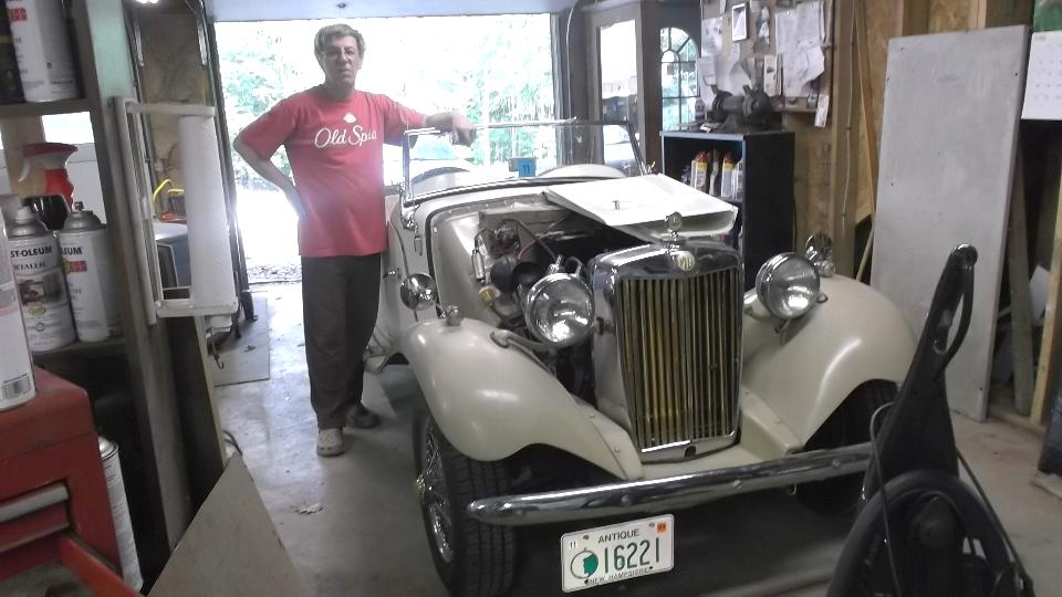 Pete Brown emailed about a problem with an MG TD that would not restart after partial warm up. He was only 75 miles away, and we had no other appointment today, so we pointed it North to Alexandria, New Hampshire. On arrival in late afternoon we find he has two TD, two MGA, and three MGB.