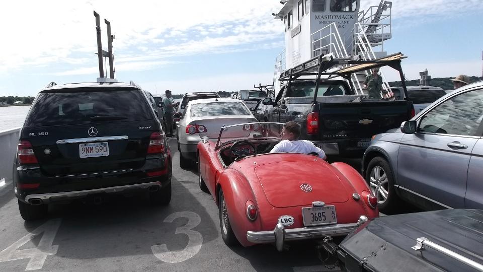 Today we're up early, because Phil wants to go cruising in his MGA to escort us around the east end of the island. We go east up the north arm to Greenport where we catch a Ferry (south) to Shelter Island.