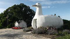 With the slow local traffic beginning to annoy us, we turned back along 6A again for a while. This is nearly all commercial stuff, lots of motels, hotels, bead & breakfasts, and restaurants galore. One lane each way, narrow road, close buildings, tight traffic, bicycles to share the road. Several miles on there were more private homes, less commercial stuff, more dark, rougher streets, and low speed limits, so we retreated to US-6 to get along going back west. About 11-pm we find a McD's with dining room closed, drive-up open and the WiFi still working when we parked close enough to the building.