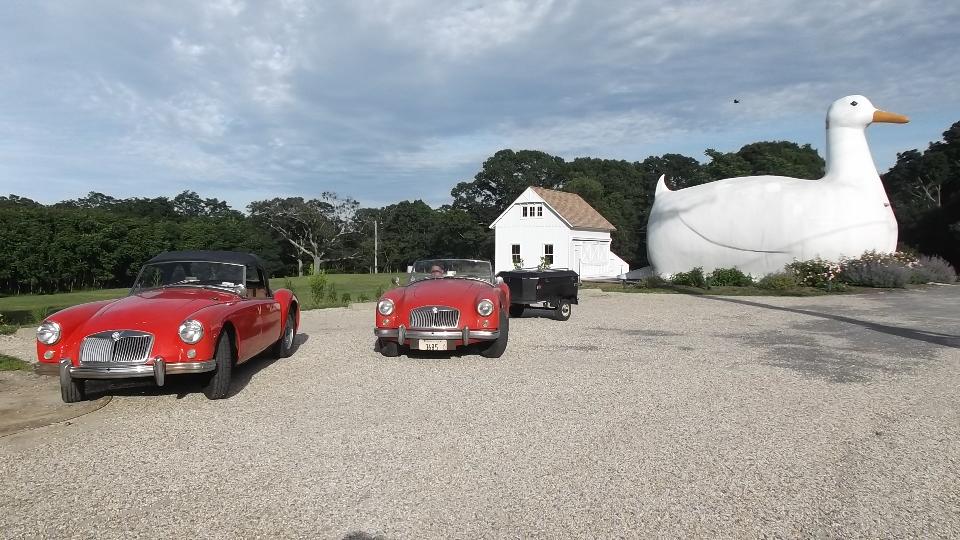 After a dearly needed nap we are moving again with about 40 miles to go. We bail off the expressway at exit-70, and 15 miles later we are arriving in Westhampton Beach 9:15-am to visit Phil Roe. We have a nice personal chat, then tinker a bit with his MGB. Then we take the opportunity to do the second oil change and lube job on the MGA. Averaging nearly 1000 miles per week it doesn't take long to accumulate another 4000 miles.