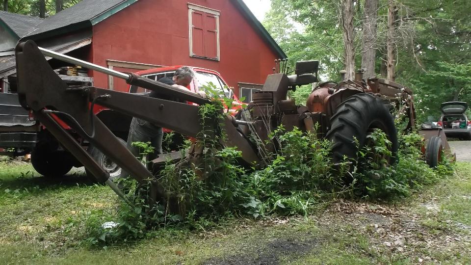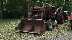 We get to sleep in a bit this morning, then get to a bit more web work and email and BBS. After a late breakfast we go poking around the yard a bit. There is this old Allis Chalmers tractor with front end loader and back hoe, looking a little piqued, but I am assured that is was "running when parked" just a few years ago. It has done a lot of construction work around the property and "Doesn't owe us a thing".
