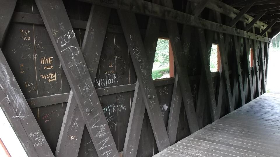 Our next stop was Kent Falls State Park. The primary attraction here is the waterfall, but the covered foot bridge also caught our attention. The park is full of picnic party people enjoying the warm sunny day.