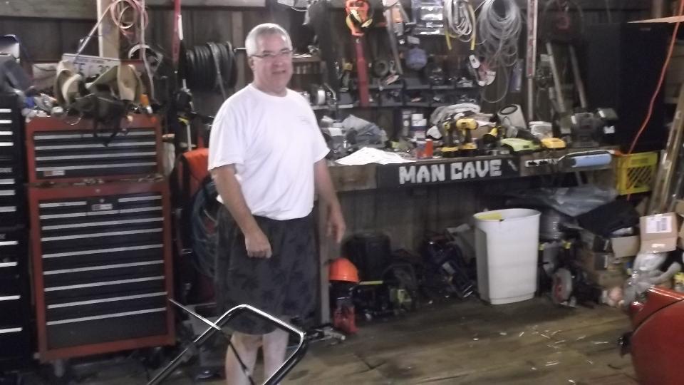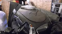 Just prior to retiring the night before, there was a little meeting of the vehicles, rather physical in nature. The rear bumper of that White 1963 GMC Delivery van in the photo above had an intimate encounter with the front of my MGA, something about the back up camera not working. The MGA grill was crushed. Otherwise it was a nice clean hit only affecting the grille surround panel on the body, no touch on the bumper or wings or lights. So today a new grille is on order for next day delivery, while disassembly and body work and primer are order of the day. See following page for more details and lots of pictures of the ensuing body work tech session. Back to the cabin at the lodge for the second night.