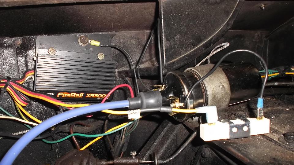 The engine would crank well, but no fire. No spark at the plugs, and no spark from the coil. This has a Crane XR-300 ignition module on the inner fender, and a 3-wire plug connecting the distributor.