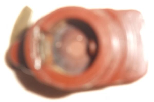 Once properly connected there was a nice hot spark from the coil, but only a very tiny spark at the plug wires. Conclusion then was, failed rotor in the distributor shorting spark to ground on the shaft. When I produced a new Lucas rotor from my magic traveling tool kit it fired up and ran well. Close inspection of the failed rotor revealed black smudges inside the shaft cavity. It appears the leak path is from the rivet securing the top contact plate to the metal spring plate in the bottom socket. Another interesting point is that the failed rotor is red plastic, for those soothsayers who believe red is good and black is bad.