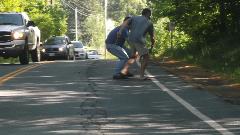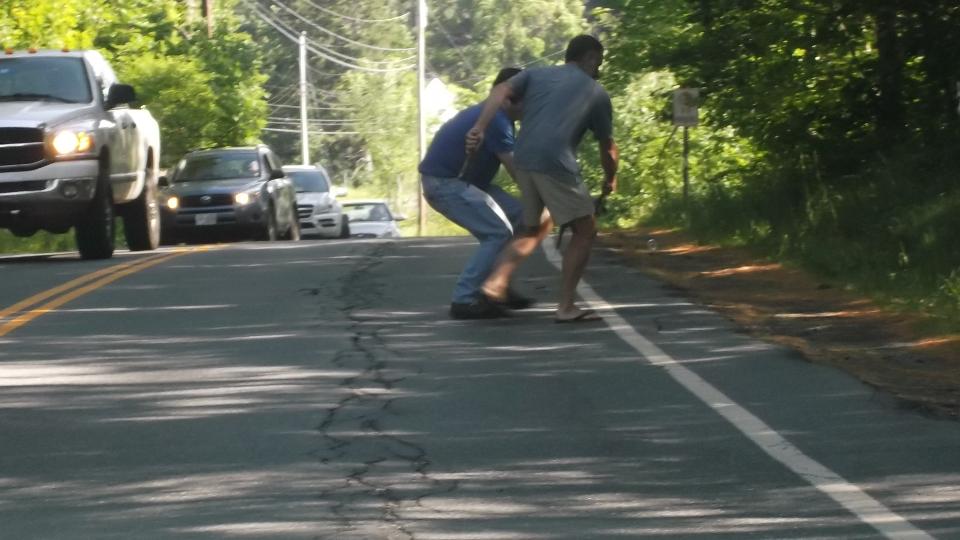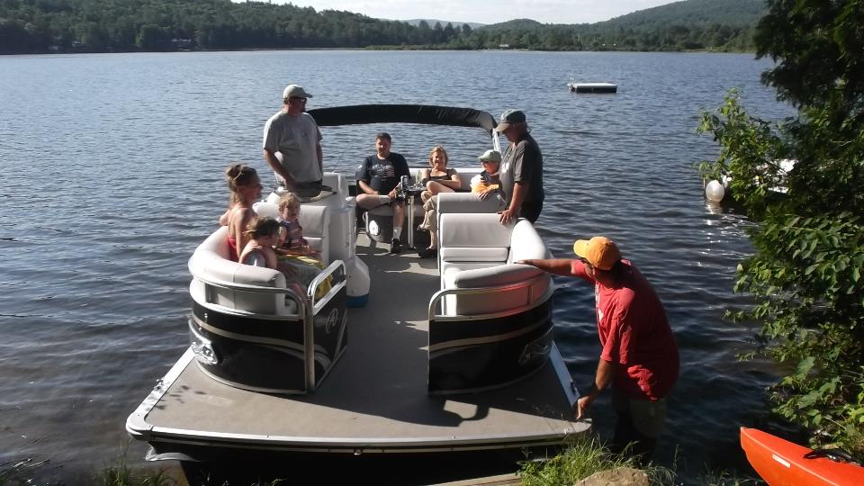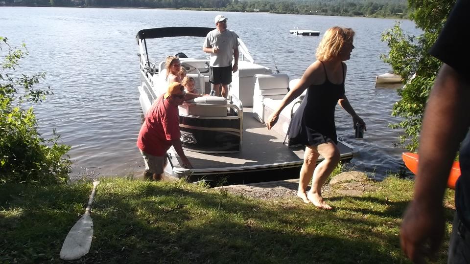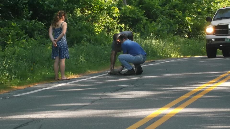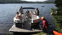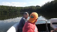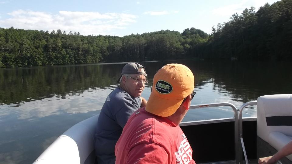 A slight delay as some amatuers who don't know how to pick up a snapper turtle move him off the road. Then we have a nice rest with a boat tour of Post Pond (the local lake) in Lyme, NH, and a nice chat with some new friends.